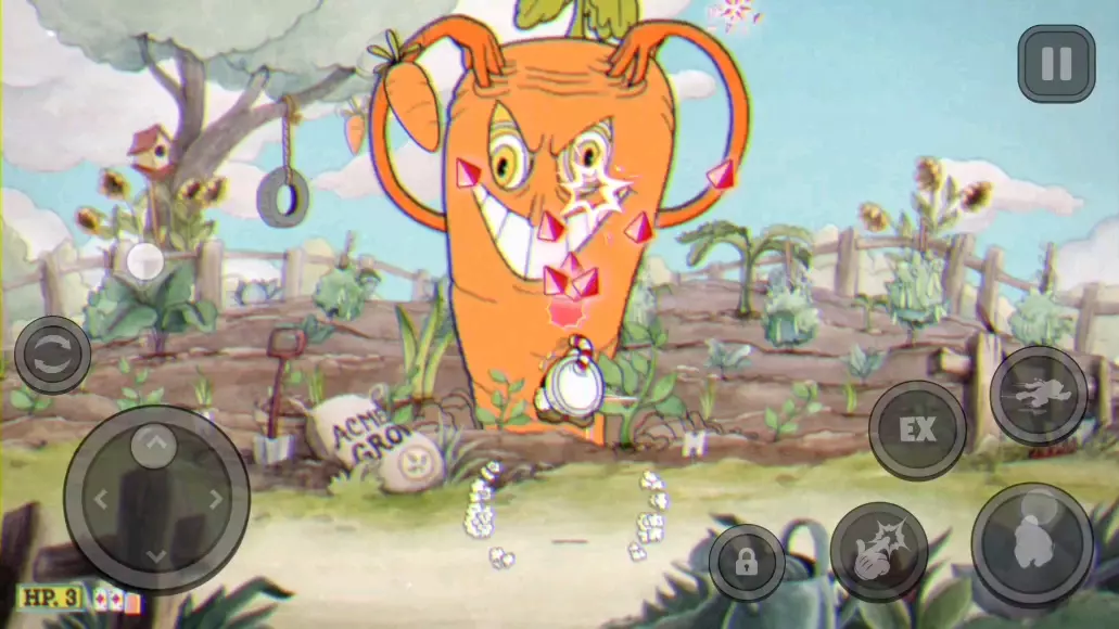 这是冒险游戏《茶杯头》的游戏内容,展示了玩家挑战专家难度的蔬菜三兄弟关卡,达成了无伤S评级的精彩战斗过程,呈现了与胡萝卜、洋葱、土豆三个BOSS的对战画面。