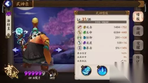 如图是我晴明的属性图,御灵38级,虽然属性没满但速度是满的,也就是128速。技能我带的灭和盾。每回合的开局先起盾!这点很重要,有利于你盾的叠加,毕竟多几层保障,才可以让你在断火的时候安然度过~第二次出手甩灭,减防御,可以提升我们的通关速度。这里要提醒小伙伴们,不要一味贪输出,因为招财是看脸的,所以楼主选择有盾就套! 因为楼主式神是穿基本无强化御魂的,所以晴明在这里作为主输出。 第二输出式神,楼主选择的是海坊主(对就是大家都强烈要求美化的鱼头叔!) 玩过兔兔的小伙伴们都知道,第一回合的大兔子和三只涂壁都是带反伤的,而且概率不低。只靠晴明AI估计没等打死大兔子自己就挂掉了,所以我们必须有奶。但是整个副本最缺的是什么?鬼火!(不要跟我提老头桃花,两点火在前期就很要命了好伐)当然,考虑到楼主前面说的晴明盾叠加不怕断火的问题,也可以考虑上这种消耗两点鬼火的奶妈,因为楼主发现盾可以叠加这件事是在第二回合,发现后直接就过了,没试过别的~ 言归正传(第一次写敲激动的,老跑题)海坊主的面板如下