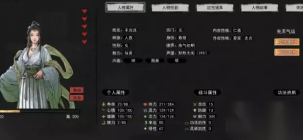 效果还是很容易理解的,就是玩家点了这个先天气运之后开局就自带一个对玩家非常忠贞的仙资道侣,这样玩家就不用担心后面找不到道侣。