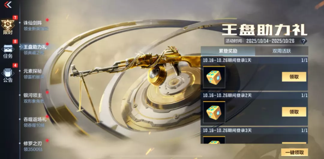 另外在10.16-10.26期间累计登录5天,每天都能领到1个典藏之骰,共计5个。