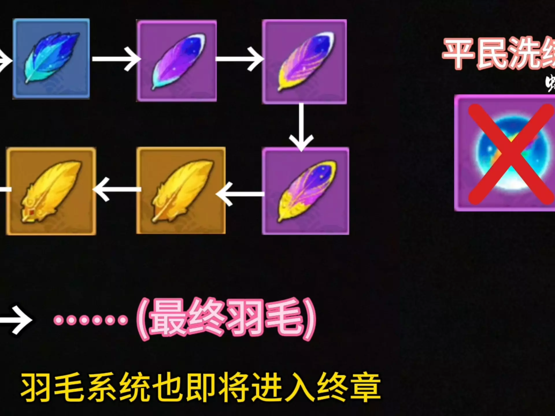 这是《造梦无双》的游戏攻略内容,针对平民、萌新玩家讲解前期羽毛洗练技巧,提到雪鸟之羽普通进化会降低属性百分比,前期洗练没必要追求完美,建议凑合用,避免浪费洗练资源。