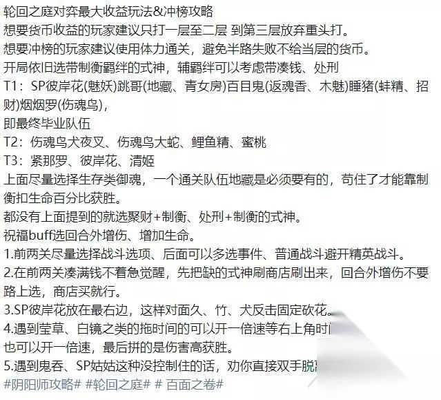 阴阳师轮回之庭是最近敞开的新活动,之前体会服上过,可是正式服相较体会服,改动了许多,阴阳师轮回之庭阵型怎样打?下面小编给我们带来阴阳师轮回之庭阵型打法攻略,一同看看吧。