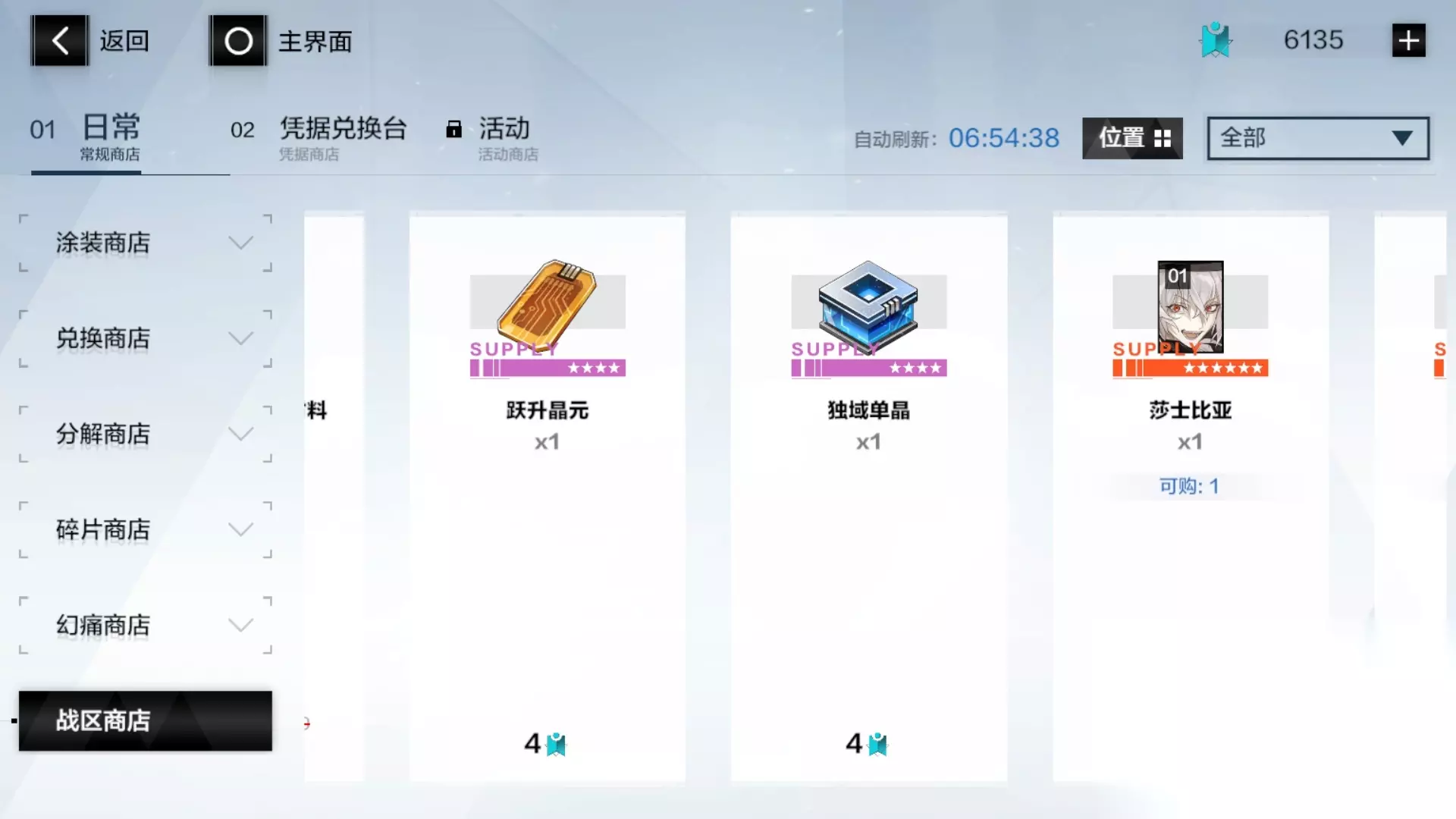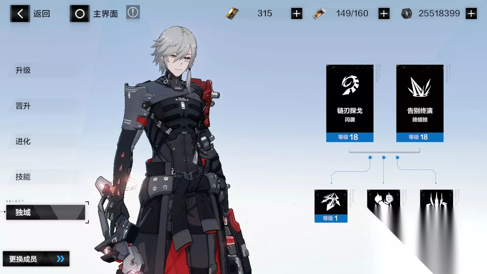 独域可以说是授格者最大的亮点,可以看到有5个技能:闪袭、终结和下面三个。如果全部拉满需要的资源不少,这边只建议解锁闪袭与终结技。具体玩法将会在第3点讲到 解锁技能需要独域晶体,辉光芯片,技能点。购买独域晶体的材料可以在战区商店购买,辉光芯片可以在活动副本的商店购买