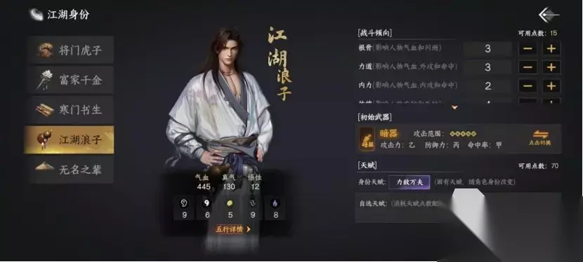 江湖浪子身份只能达成一种结局,也就是踏月无痕,与红颜知己远去海外;人在江湖身份,开局是随机身份,体验不同江湖人生,沙盒玩法,没有具体剧情。