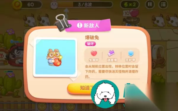3、等新的敌人爆破兔出现的时候,要及时的锁头打掉,不然产生的爆炸会打掉我们的炮台。