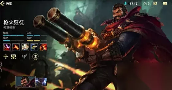 二、分路推荐 游戏中推荐玩家选择打野位置。由于格雷福斯的普攻特性,每次攻击的时候都会击退野怪,这让他可以快速无伤的刷野,再加上他只有两个技能是主力伤害技能,非常依靠平A输出,且射程较短,在线上完全没法发挥出他的优势,所以在分路上推荐走野区打野位置。