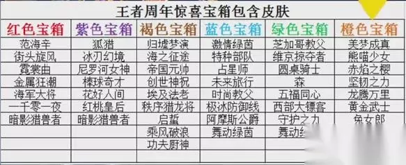 王者荣耀王者周年惊喜宝箱选什么颜色好?本次活动是王者荣耀六周年活动增加了皮肤宝箱,本次活动宝箱中包含了很多不同的颜色,所以大家可以通过领取不同的颜色来获得不同的奖励,这里为大家介绍一下本次活动中的全部奖励。