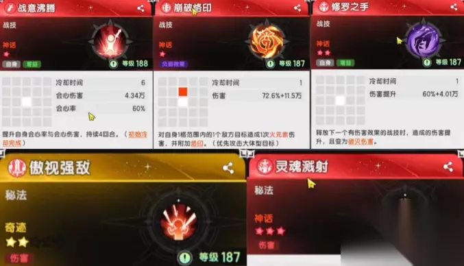 4.物理连击流 五转新增了绝气斩和破碎连舞两个物理技能,分别提供破甲和降格挡,在低品质时就很好用,再加上狮子连斩+日蚀连斩的多段物理伤害,配合必带的裁决之刃,就完成了物理连击流的框架; 而其他三个被动可以选择红莲战意+极速对决+会心精通,直接抛弃强袭破甲,重铸连击流荣光!此玩法适合三转枫叶品质比较好的玩家。