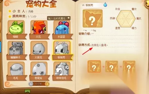 点击宠物大全的宠物,在右侧面板,可以宠物获得的途径,如图所示