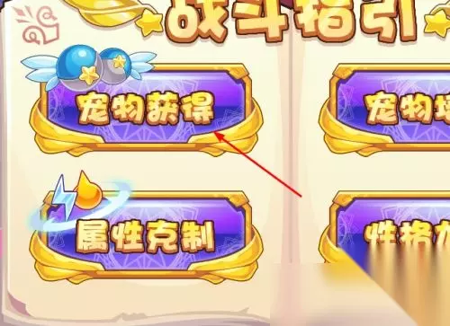 另外获得宠物的方式,点击打开游戏主界面的指引,进入界面,点击宠物获得,如图所示