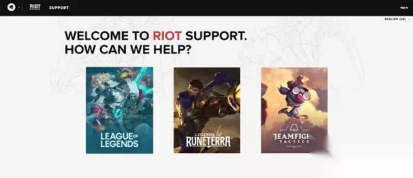 海外riot拳头账号怎么注册? 首先玩家可以搜索riot games也就是拳头公司的官网,这个在国内是也是可以直接访问的,切换语言到英文。 之所以要切换到English官网,是因为中文的官网默认对应国服,所以账号系统也就和腾讯直接挂钩了。进入之后发现是中文的可以划到底部在左下角找到切换语言的选项。 在英文官网的底部,玩家可以找到player support也就是玩家支持这一栏,点击进入之后就可看到如上界面。