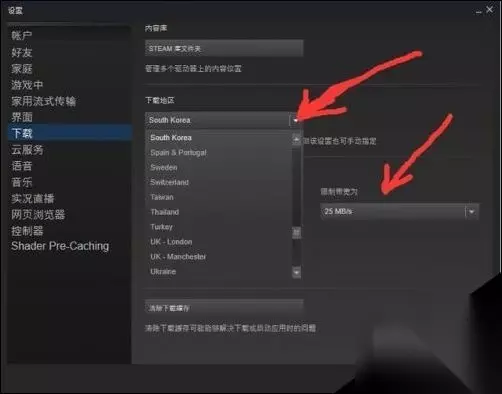 关于下载服务器的选择,小编推荐美国西海岸的服务器,比如洛杉矶,因为STEAM下载是BT原理,美国那边玩家很多,绝地求生的下载的也很多,所以速度相对会更快!距离远不会太影响你的下载速度。由于每个人的网络都不同,所以如果西海岸服务器没用,你也可以尝试South Korea韩国或者Japan日本下载服务器。
