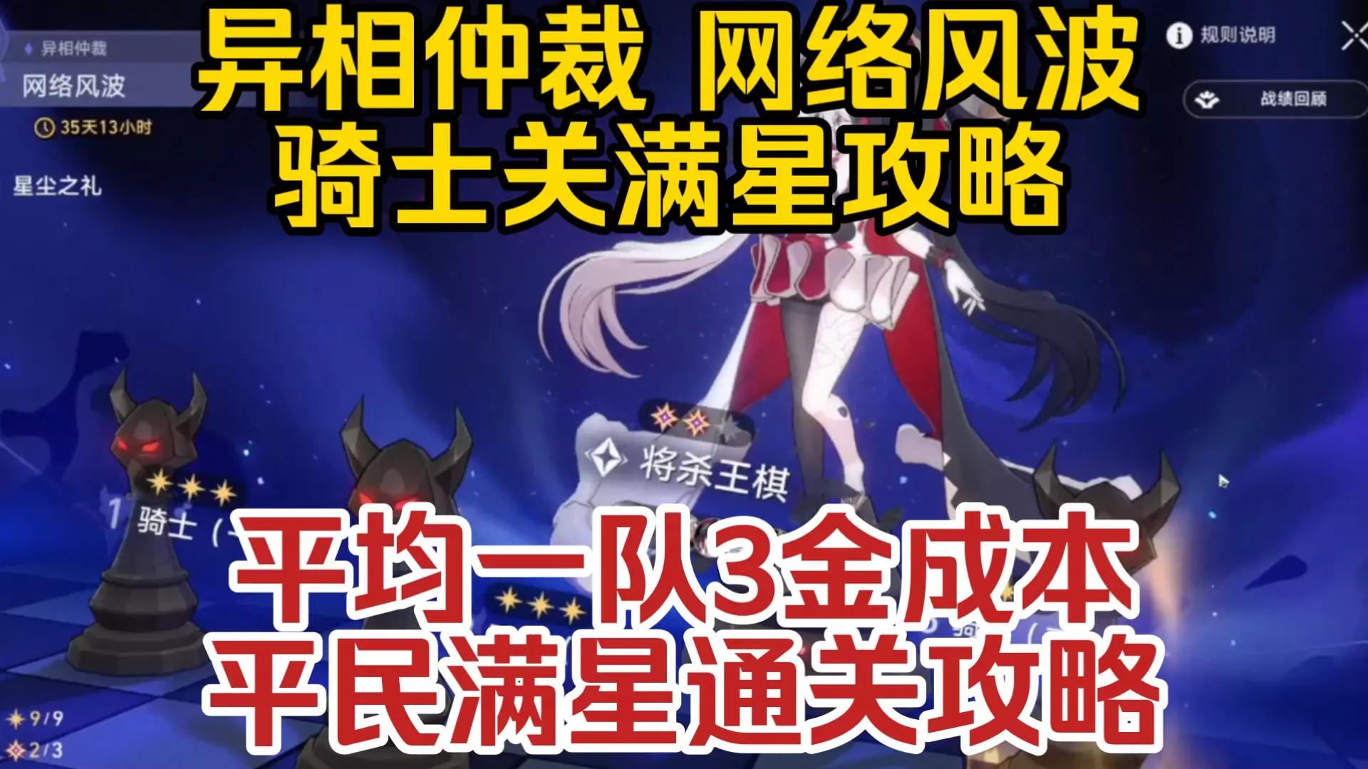 这是《崩坏:星穹铁道》的攻略内容,展示了平民练度下,无需星魂,仅用2限定金+4隐金的配置,让希儿队伍满星通关异相仲裁-幸福语法中的骑士三盗火行者关卡。