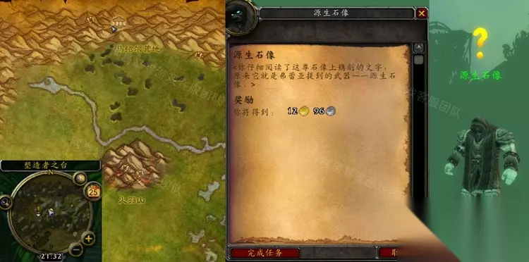 魔兽世界怀旧服WLK源生石像任务怎么做呢?不少小伙伴都在找寻这个源生石像任务的具体做法,其实这个任务不难,只需要大家好好的去找寻一定的线索就行了,大家看完就知道源生石像任务的具体流程了。 怀旧服WLK源生石像任务怎么做 接取等级:77 接取NPC:弗蕾亚的化身(索拉查盆地,雨声河) 完成NPC:源生石像(安戈洛环形山,塑造者之台) 奖励声望:无 任务开始: