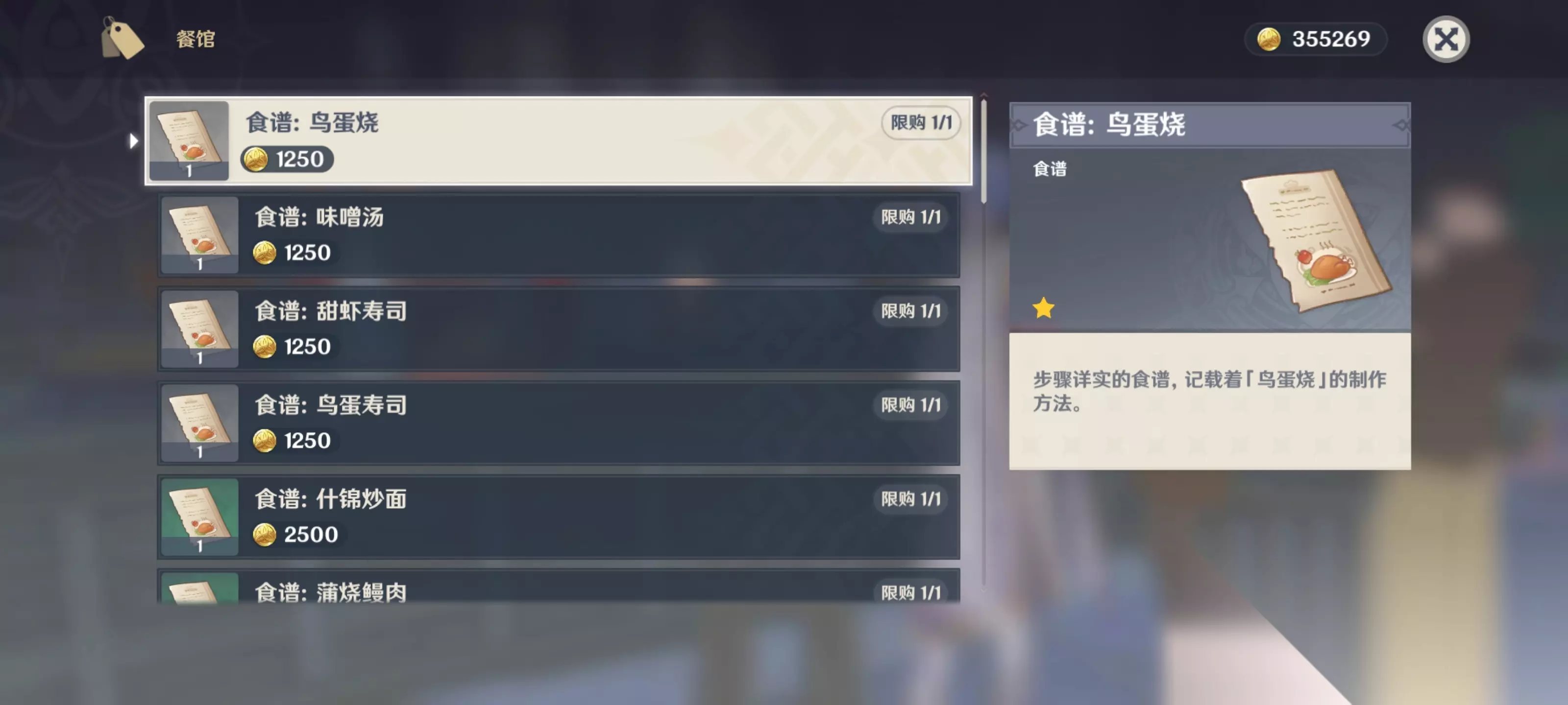 2.就这个老板,第一个商品就是鸟蛋烧食谱(白色品质),需要一千多摩拉。