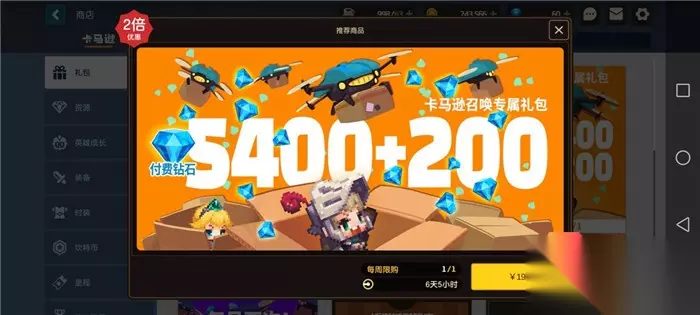 3、卡马逊专属礼包:卡马逊专属礼包的价格是198元,每周限购一次,购买以后可以获得5600付费钻石。