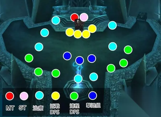 战斗流程: 第一步: 在战斗开始时,萨鲁法尔会与他的儿子交谈,然后被BOSS的空间法术禁锢在空中。随后,战斗开始,坦克必须将BOSS坦在台阶下,以避免台阶高低差引起的远程职业视角问题。 第二步: 将远程DPS分成三个小队,其中一个击退组的位置靠近前线,DPS组尽量拉到30码的距离攻击,小队成员之间间隔要保持在10码以上,以防血液沸腾对多人造成伤害。 由于血液沸腾可能会溅射到附近的玩家,因此站位应尽量分散。 第三步: BOSS会施放血魄印记在当前坦克身上,BOSS攻击身上有血魄印记的目标会回血,还会增加BOSS的鲜血之力。当主坦克被施放了血魄印记时,副坦克必须立即嘲讽,等血魄印记消失后,主坦克再将BOSS嘲讽回来。 第四步: 战斗开始后的30秒,BOSS会在身边的五个点召唤五只血兽。猎人必须提前设置好冰霜陷阱,盗贼使用偷天换日来引导血兽,鸟D同时使用飓风术对血兽进行AOE伤害,以确保尽快吸引血兽的仇恨,并将它们聚集在一起,以便更好地击退和控制。 击退组必须设定好击退顺序,以确保在血兽快要脱离冰霜陷阱时,将它们击退,争取更多时间来进行远程击杀。随后每30秒将会召唤一波血兽,远程DPS必须在30秒内将它们全部清除,而近战DPS可以在不产生过多仇恨的情况下继续攻击BOSS,同时使用范围技能清理血兽。 萨鲁法尔每30秒在身边召唤五只血兽。 第五步: 两组远程DPS小队选择一个人来标记血兽,然后其他队员跟随标记击杀。要注意,血兽具有AOE减伤的BUFF,因此不能使用AOE方式击杀,必须逐个点杀。当快速击杀几只血兽之后,前方的击退小组的击退技能可能已经用完,此时脱离冰霜陷阱的血兽可以使用冰霜新星或萨满的群体缠绕技能,以争取更多点杀时间。 击退示意图: