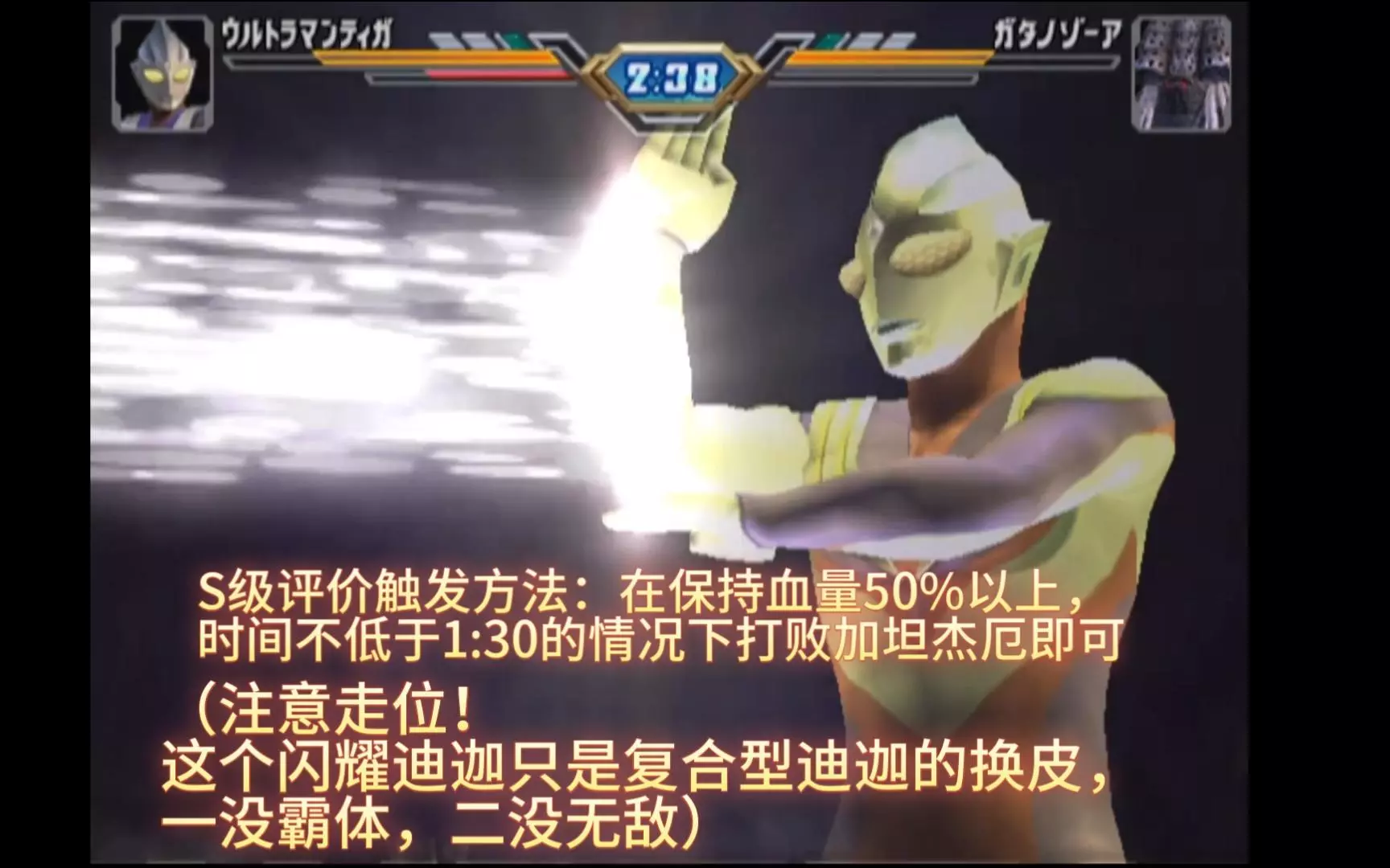 这是《奥特曼格斗进化3》的游戏实况,展示了迪迦奥特曼释放单人交叉光线,与邪恶迪迦展开对战的精彩画面,还原了奥特曼的经典战斗场景。