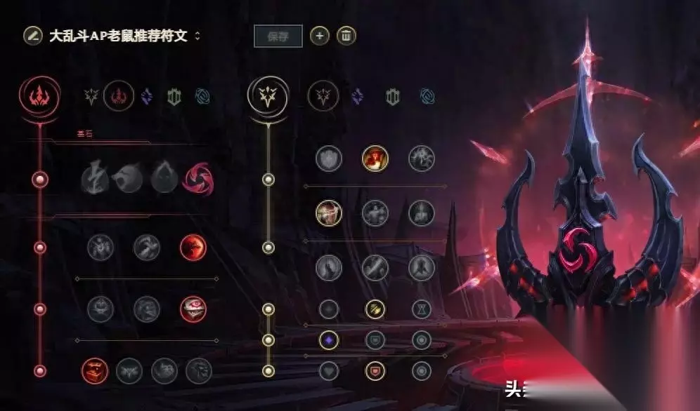 主系符文:丛刃+猛然冲击+眼球收集器+寻宝猎人 副系符文:凯旋+欢欣 符文解析:AP老鼠讲究快速叠满6层被动E技能引爆,所以丛刃是最适合AP老鼠的符文。 猛然冲击增加双穿,提升爆发伤害。 眼球收集器提供法强,伤害更高。 寻宝猎人让老鼠快速做出纳什之牙,保证作战能力。 凯旋增加团战收割能力,新手不会控蓝就点气定神闲。 欢欣增加攻速,更快叠层。 【出装和加点】