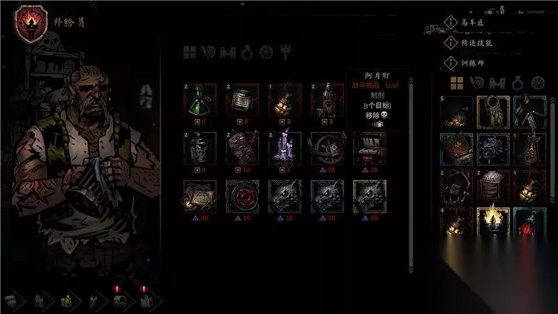 酒馆消耗品只能在酒馆休息时使用,这些消耗品的用途依然很大。 酒馆消耗品中有些可以清除负面状态或降低压力值,有些则可以为你提供下一次探险的初始BUFF。 另外还有一种酒馆消耗品,可以用来改善队友之间的人际关系,但这种消耗品具有成功率和失败率的属性,你需要酌情使用它们。