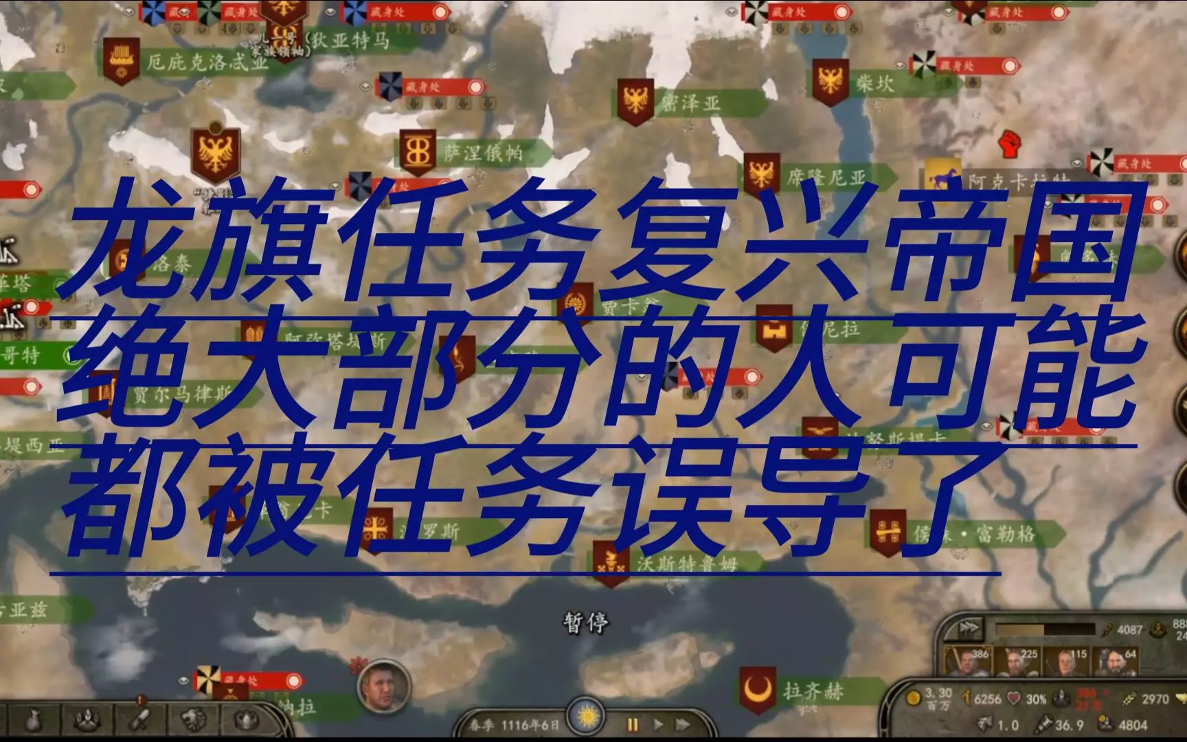 分享骑马与砍杀2的游戏实况,玩家首次通关龙旗任务,发现完成龙旗任务后,所有帝国的领主与国王都会自动归顺加入己方阵营。