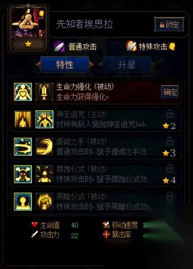 DNF阿拉德谋略战第二季先知者埃思拉加点建议 埃思拉是辅助卡,因此存活能力比较终于,加点推荐:生命力强化、神圣诅咒、虔诚之手、腐蚀仪式、黑暗仪式。 神圣诅咒可以叠加3次对目标造成额外的30%伤害,腐蚀仪式可以增加20%对敌人的伤害,这一个卡片4星级就可以提升50%的攻击力加成。 DNF阿拉德谋略战第二季先知者埃思拉怎么加点就介绍到这里,如果对您有所帮助,不妨转发给其他需要的玩家,更多相关攻略正在添加中。 关键字: