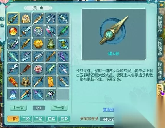 灵宝,在右下角信息-图鉴-灵宝图鉴 里面