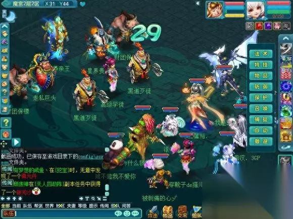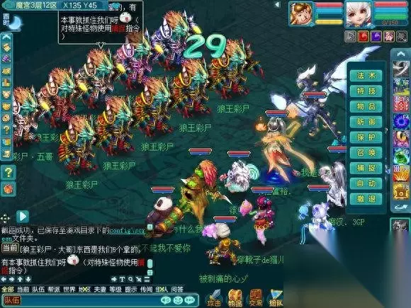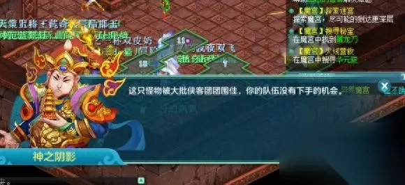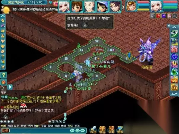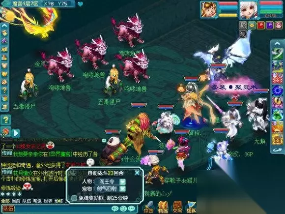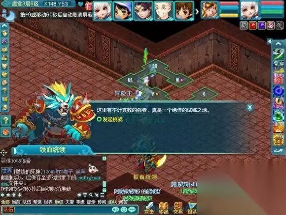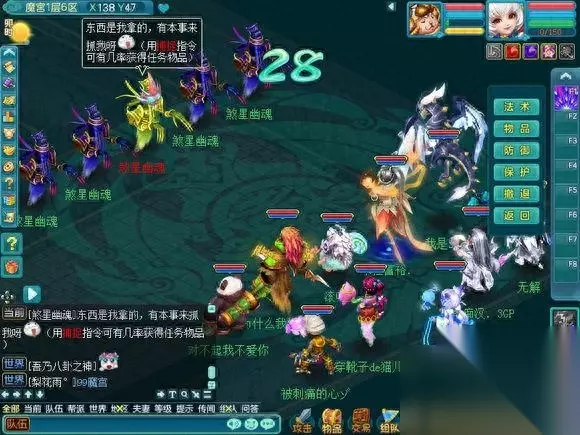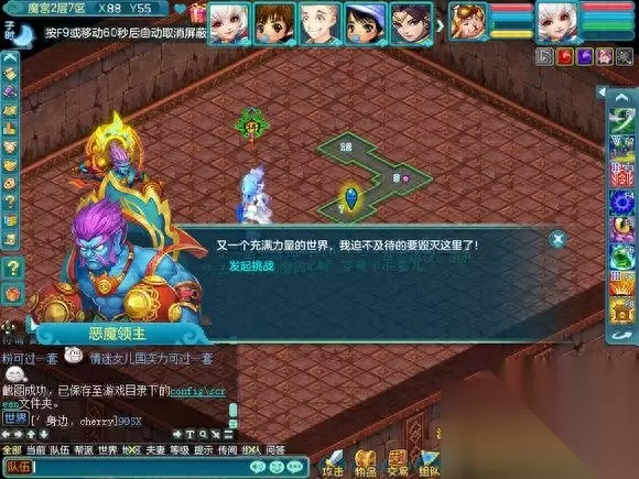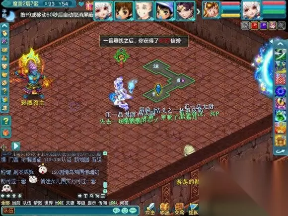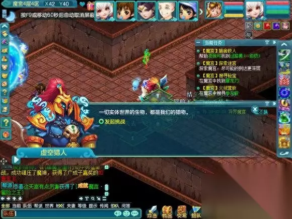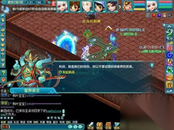 这个是第五层的魔宫最终BOSS.一般都会无法进入战斗,因为很多人会比自己更快上来, 也有一些为了成就 跑的超级快。。 这个BOSS就类似黑龙活动的黑龙和降魔活动里的穷奇,一起杀的怪,在频道会报血量百分比。