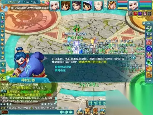 注意时间 可以点击这个地方的蓝色按钮进场!或者直接跑去NPC附近进场