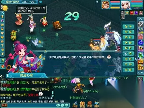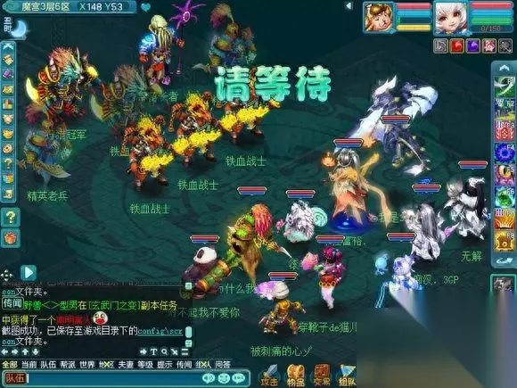 一般类似幻境魔宫的活动我会开契约。 这里是准备厅,19:30就能进来,20:00才可以点击神秘庄客进入魔宫,到时间才会有进入魔宫按钮。 一般组一个封一个辅助三个输出,足矣。 好了开始吧!