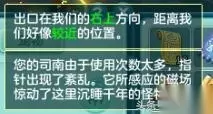 4.司南:一定在队长身上,所以如果中途换队长了,也不能挂机,总之全队都不能挂机,这个在某一个场景里面是要一直右键辨别怪在什么地方的。 我点了太多次没点对,就遇到了其他怪,点对了不是这些 但是这个挺好杀的,不怕。
