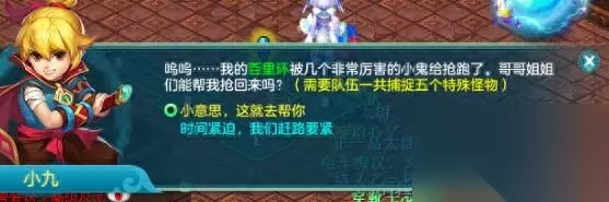 这个是女孩子,叫小八,上面的男孩子叫小九。女孩子的抓宠物任务是不用暂离的,因为要一次抓五个,对位抓变异就好了,前排无视。抓完回去找女孩子就完成任务了。 如果有人有事情走开了没抓也没事,第二回合也可以抓的。