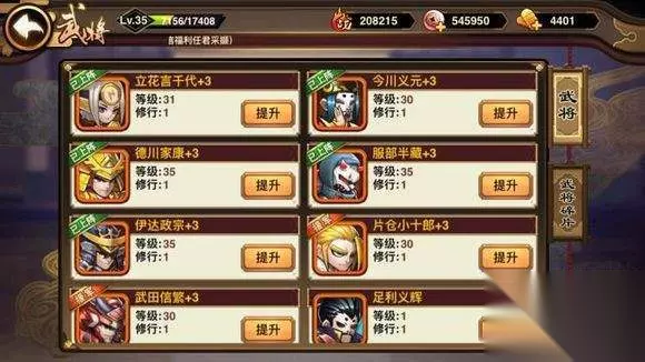 开局注意事项: 所以该游戏对抽将概率做了大调整,所以不建议各位大量用银币抽将,少量抽将,还是以兑换为主比较好。 所以前期玩家很容易受指引误导进入武田或者传奇阵营,个人认为还是以兑换为主,坚持己见较好。 主要还是看技能和技能攻击模式,目前最好的附加效果就是让对方减怒或者给我方加怒,因为加减怒是无法被驱散的,其次是加深伤害和毒以及灼烧效果,但是要注意的是加深伤害毒以及灼烧是不能叠加的,所以配置阵容时不要上带两个同样效果的阵容。技能效果方面,仅仅给自身增益这种效果是不太好的,也容易被驱散。 而技能攻击模式也是最为重要的标准之一,最好的攻击模式为随机模式,随机打三个,其中随机并且大概导航是最极品的,比如本多随机攻击三个怒气最高的,就是随机带导航。其次是全体攻击或者一排的攻击模式,也是不错的,但是对于全体攻击,一个阵容里最好最多3个,不要太多,不然攻击太分散了,不容易杀死对方。然后就是单体模式,放在最后排,补补刀和收残局都不错,但是单体将顶多上一两个也就够了。最差的攻击模式是一列的攻击,输出不如单体,却常常只能打到一个,除非是红将或者缘分,不然一般都会尽量避免上阵列攻击的武将。 当然,除了上述条件之外,一般最优先的还是侧重品质,紫将基本全部淘汰,有红将还是优先选择本阵营红将。建议选择同一阵营而不混搭的原因,除了缘分之外,还因为部分武将突破后的加成只加成本阵营武将。