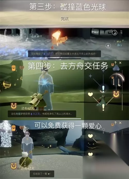 光遇水精灵是游戏中的任务道具,但是很多玩家不知道水精灵在哪里。下面小编为您带来光遇水灵定位指南。让我们来看看吧。 光遇水精灵定位指南 任务受理 1.黄昏大地之水之灵是任务道具。需要前往幻季黄昏地方舟始祖,才能完成接收水灵的任务。 2、水灵的获取方式是进入黄昏大地方舟地图,找到【向导】。