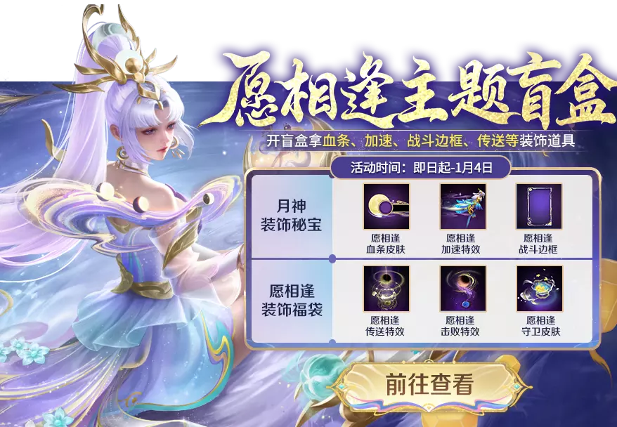 解锁并分享愿相逢套系皮肤,即可解锁专属称号奖励-花好月圆等好礼~