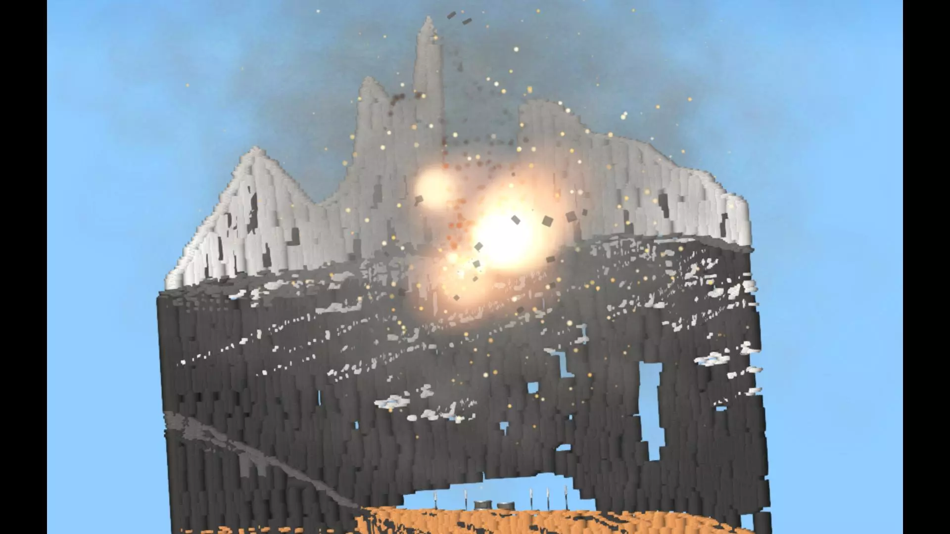 这是航天模拟器中的另类玩法展示,玩家为了测试超大圆柱体的威力,搭建巨型长圆柱体后通过传送调整位置,让巨型圆柱体在地球表面倾倒,展示特殊玩法效果。