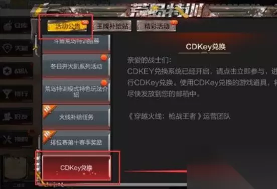 兑换CDK方法: 1、进入官方网站:首先,您需要访问《穿越火线》手游的官方网站。 2、找到CDK兑换入口:在官网上,找到顶部的导航栏,并点击“CDKey”入口。 3、绑定游戏信息:进入兑换页面后,您需要绑定您的游戏角色和游戏区域等信息。 4、输入兑换码:然后,输入您获得的CDK兑换码。