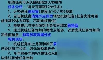 2.机缘属性则是通过完成机缘任务来增加属性,具体如图:
