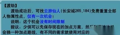 3.仙玉重置:仙玉重置属性和转门派的花费是一样的,无论是仙玉消耗还是经验消耗都是一致的,各等级具体消耗如图所示: 4.渡劫后免费洗点的机会:人物角色渡劫成功之后,可以获得一次免费洗点的机会,也仅有一次机会,无时间限制,具体如图所示: