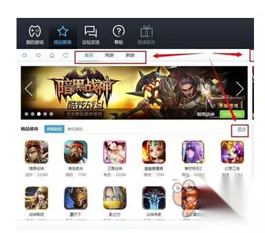 第三步,在精品聚焦页面可以搜索、查看更多游戏,收录了最新网游和新游。