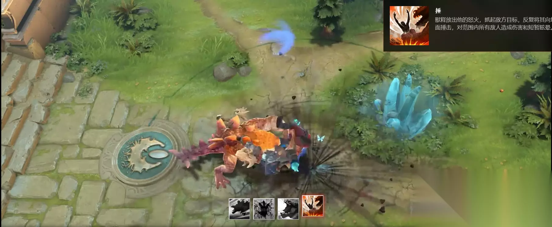 DOTA2 7.31加入了天地迷宫的BOSS獸为新英雄,那么獸的技能如何呢?下面给大家带来的是DOTA2獸技能/魔晶/天赋一览,一起来看一看吧。 DOTA2獸技能介绍 一技能: