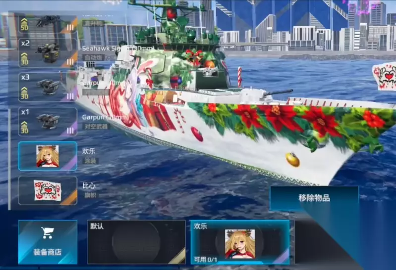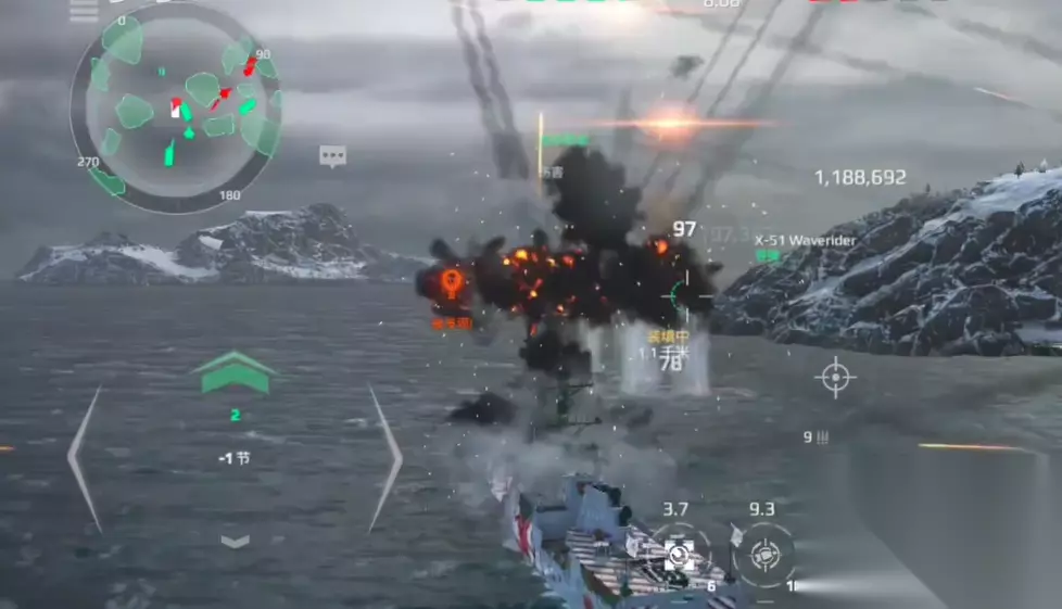这个战舰搭配的导弹武器为双x51,该导弹的锁定范围很大,可以远距离对周围的战舰造成伤害,尤其是天空中战斗机不断包围的情况下,使用可以使用该导弹造成范围攻击,从而提高自身的清图速度,然后主炮方面使用莫娜克155,这个主炮的优势在于持续火力很猛,而且稳定精准很好,面对机动性高的战斗机也是能精准无误地打击。