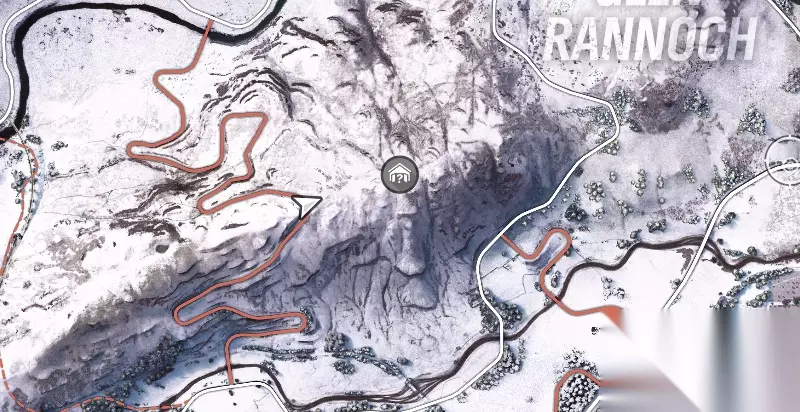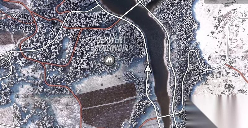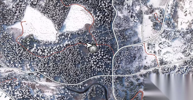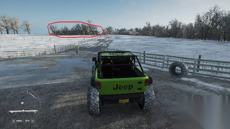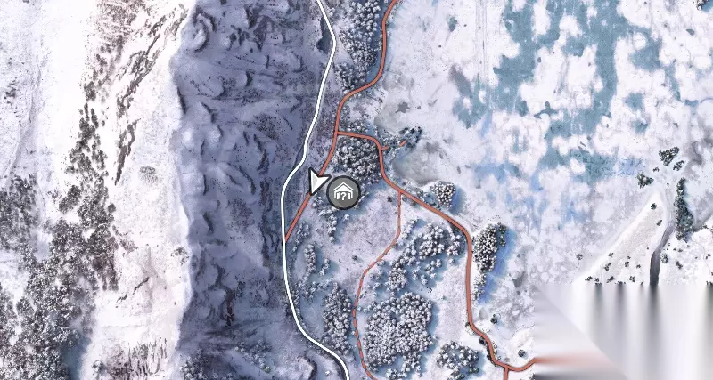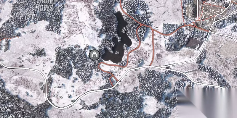 在三岔路口处,找到一条没有在地图上标识的土路,尽头即可找到隐藏车库(图中已经展示车库位置)