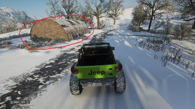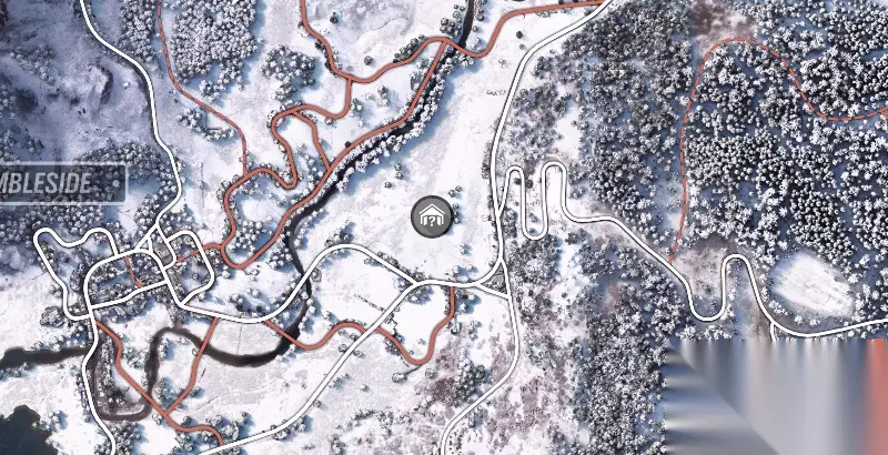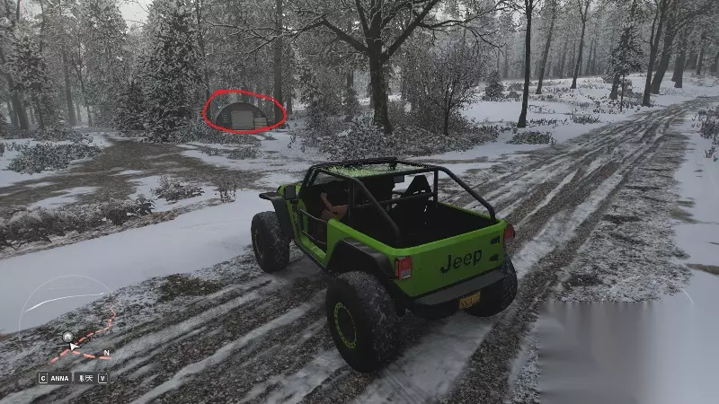 沿着小路一直深入,就能找到这个位于路边的隐藏车库(图中已标出)