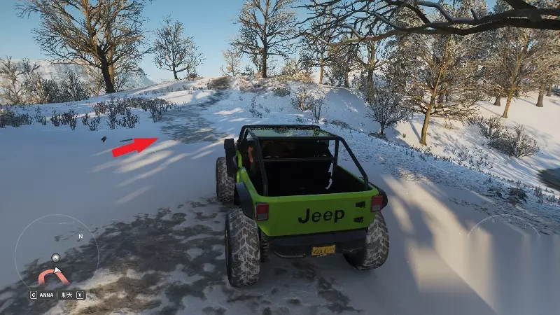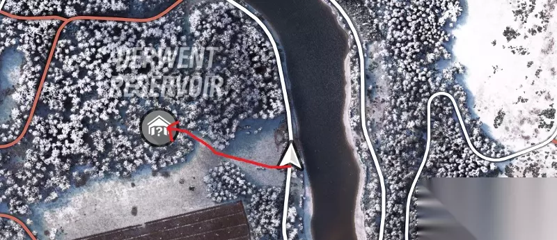 首先驱车来到湖边的泥路上,找到一条没有雷达标识的小路并开进去(图中已经给出指示)