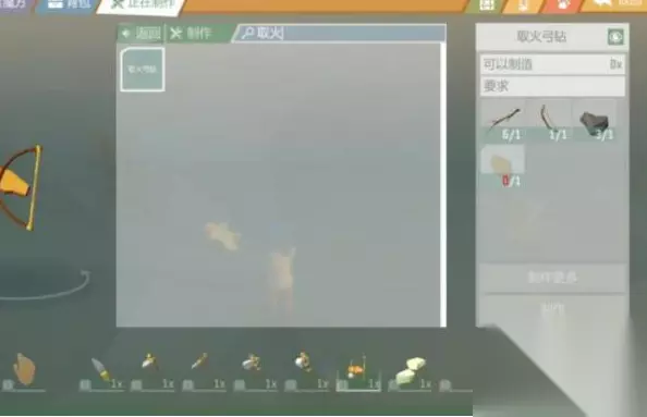 3、制作火弓钻需要使用1根木棍、1个棍弓、1颗石头、1个树皮。 4、使用火弓钻玩家就可以将木棍、营火等点燃。