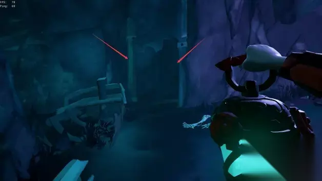 之后沿着路走道里面,从一个水门进到山洞里拿到桨柄。此处注意不能切换武器或者装备,不然桨柄会掉地上不好找。