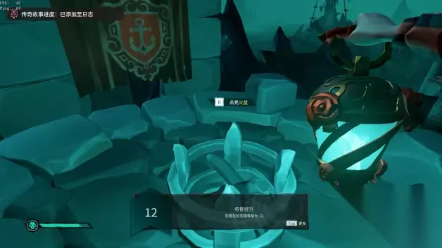 然后爬上去用灯笼点亮火盆。
