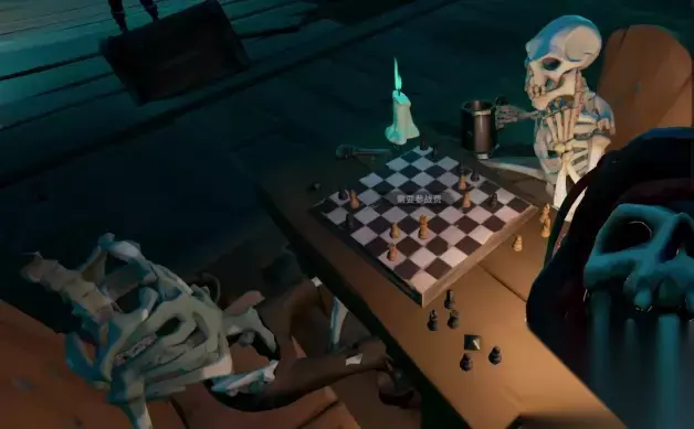 然后拿起船长的头放在地图桌边的尸体上,他会给你一把钥匙,用钥匙把他背后的门打开。