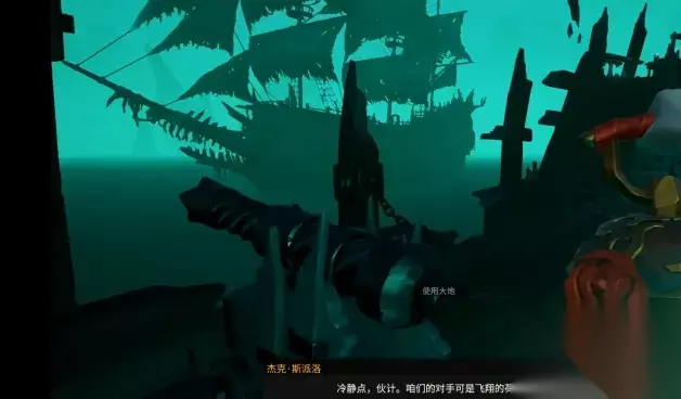 开门后,后面有个小船,把小船放下去,现在就可以划去摆渡船上解救杰克船长了。要划到摆渡船后面,把小船挂上去才能上船。